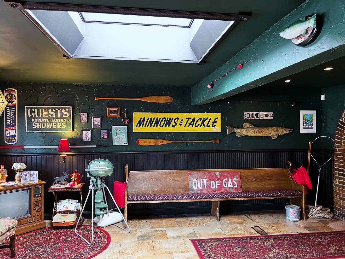 At least one room or bar area with wood paneling?